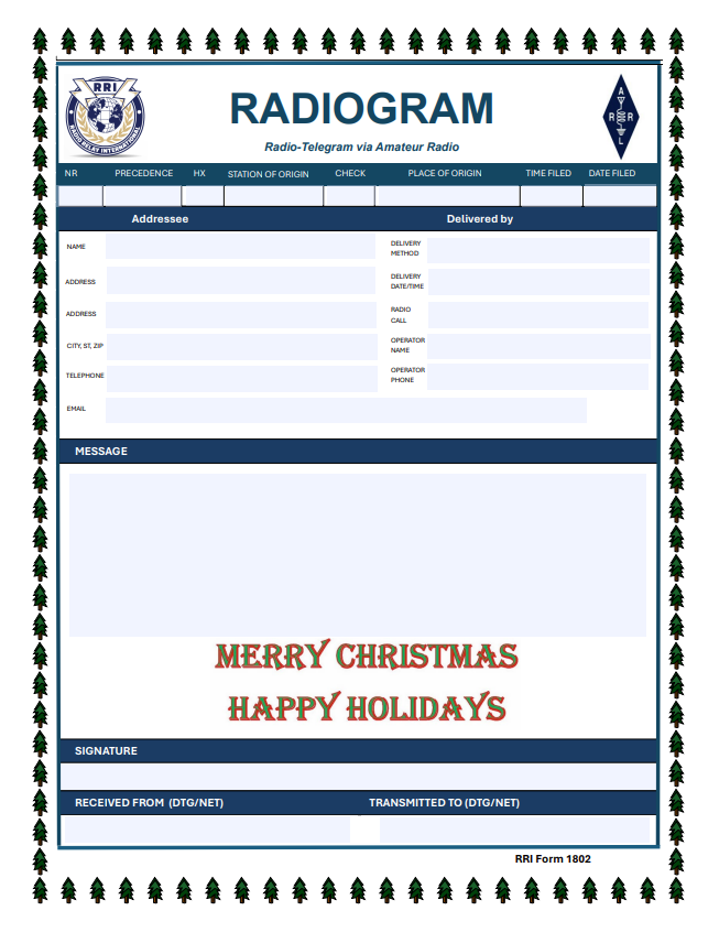 - If you have an email address, provide that too. There is a special Radiogram form for delivering Holiday Greetings. This will be filled in and attached to the email. Delivery by email is the preferred path for Holiday Greetings Radiograms.